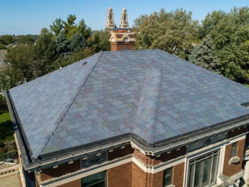 A slate roof is a perfect complement to a historic or distinguished building. Nothing can compare to the look of slate. Real slate can be problematic, often requiring additional framing, bracing, and engineering to accept the weight. Roofs with existing slate often require constant costly repair. Synthetic slate comes in a variety of traditional styles and colors, and mimics the look of authentic slate perfectly without the additional weight and need for constant repair. Synthetic slate by Legacy Service looks so genuine that it is often used for historic restoration projects.